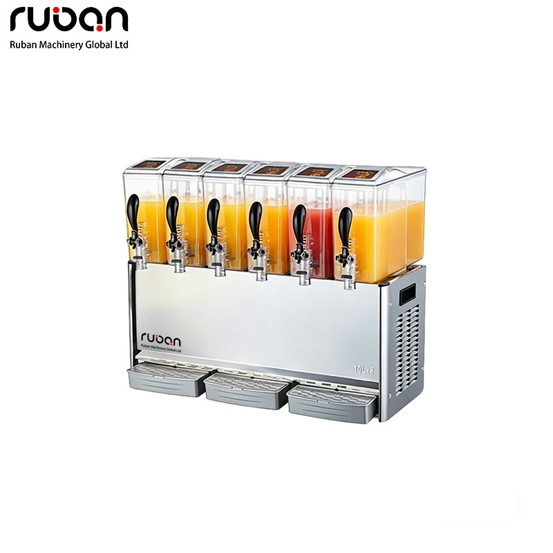 Este dispensador de jugo comercial es un tipo de equipo para servir bebidas frías y calientes, que adopta un diseño dividido de múltiples cilindros con especificaciones opcionales como cilindro doble o triple.De cuatro y seis cilindros. El dispensador de bebidas está diseñado para mayor comodidad, evitando derrames al servirlas. Es ideal para establecimientos comerciales como teterías, cafeterías y bufés, y puede ofrecer una variedad de bebidas, incluyendo zumos de frutas, tés y zumo de naranja con pulpa, al mismo tiempo, mejorando la eficiencia y la diversidad de la venta de bebidas.