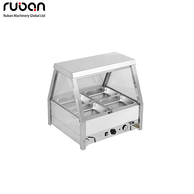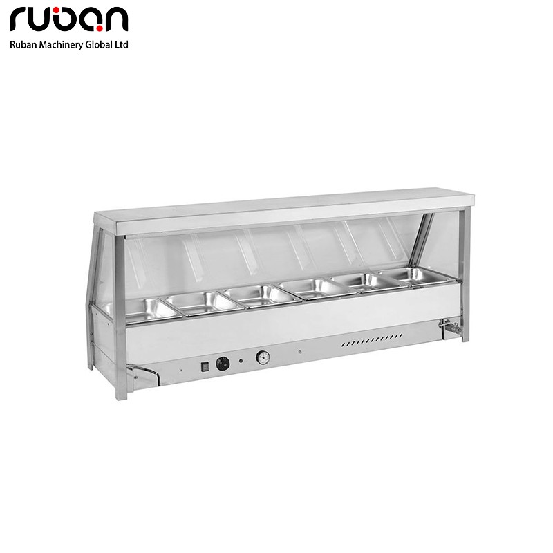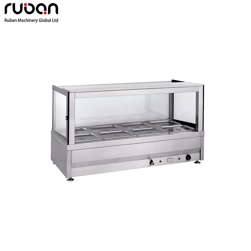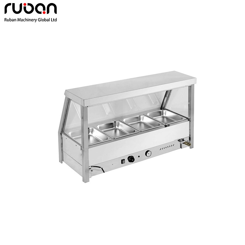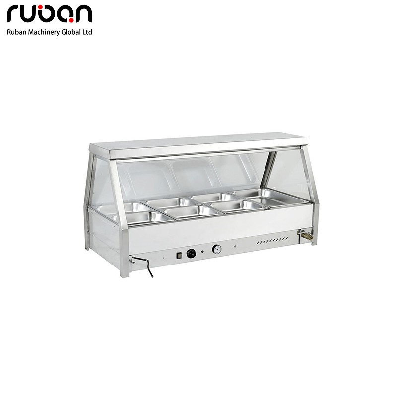 Este baño maría eléctrico de uso comercial cuenta con una resistente carcasa de acero inoxidable y una vitrina de cristal transparente para una presentación higiénica de los alimentos. Equipado con control preciso de temperatura y manómetro, proporciona un calentamiento uniforme y eficiente para mantener los alimentos a la temperatura ideal para servir. Disponible en configuraciones de 4 a 12 bandejas, es perfecto para restaurantes, bufets, hoteles y empresas de catering.