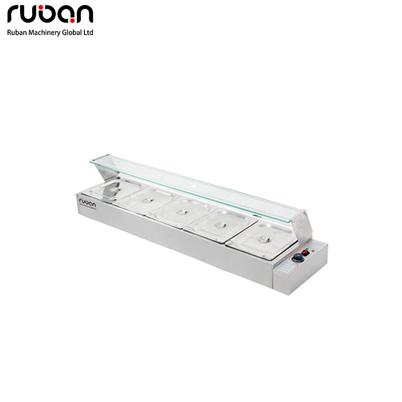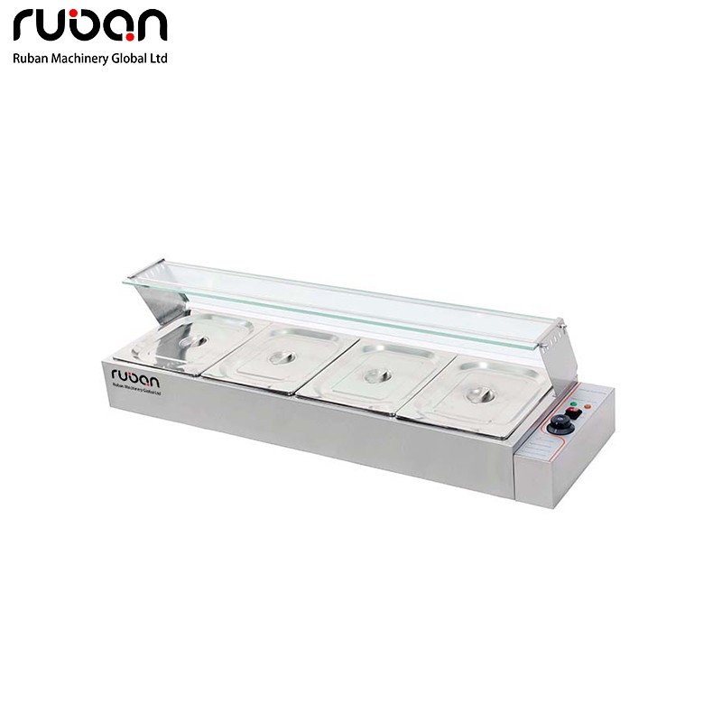 Baño maría eléctrico comercial con mampara de cristal y termostato de precisión. Fabricado en acero inoxidable duradero y fácil de usar. Ideal para restaurantes, bufés y servicios de catering. Disponible en varios tamaños.