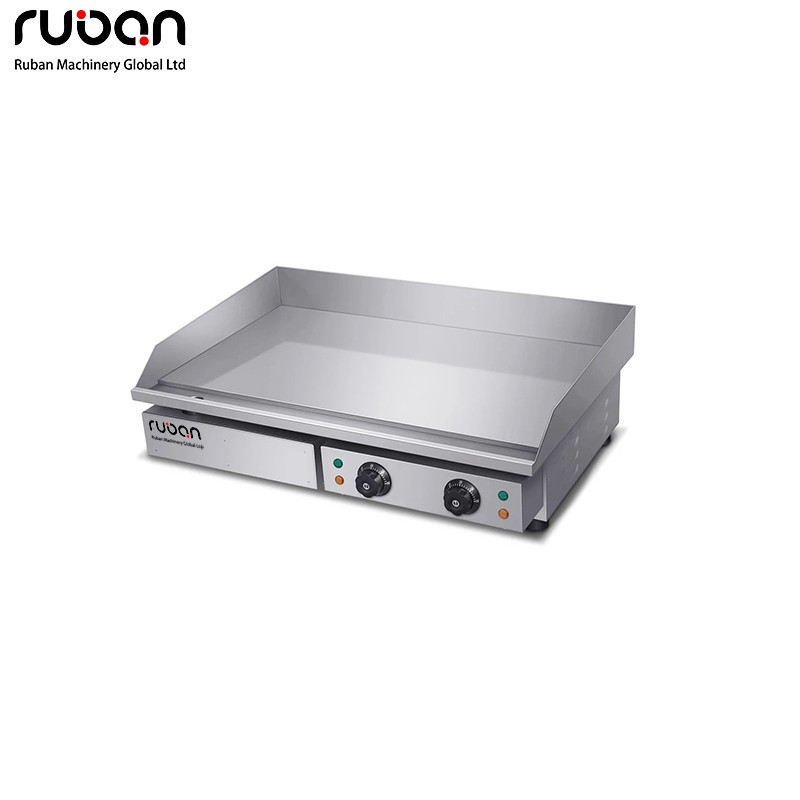 Plancha eléctrica comercial de acero inoxidable, duradera y fácil de limpiar. Control preciso de la temperatura, calentamiento rápido y uniforme. Diseño compacto para encimera con bandeja recogegrasa extraíble. Ideal para restaurantes, cafeterías y puestos de comida.
