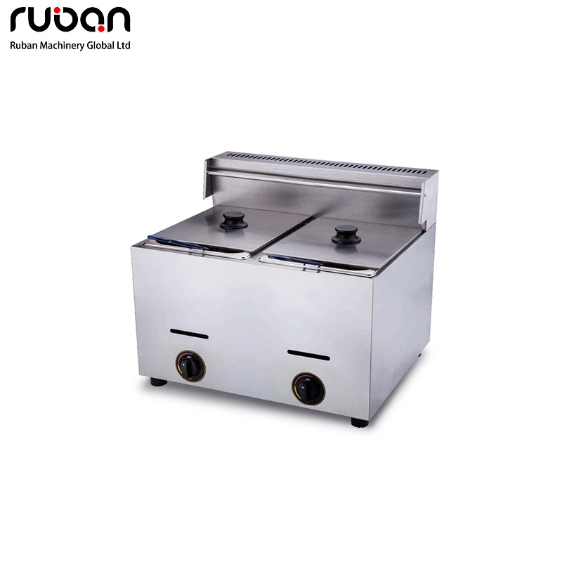 Freidora de gas de sobremesa que ahorra espacio, perfecta para pequeños restaurantes, food trucks, cafeterías y bares. Fabricada completamente en acero inoxidable, con depósito de aceite extraíble, fácil de limpiar y usar. Ideal para freír patatas fritas, pollo, aperitivos y mucho más, con un calentamiento uniforme y eficiente.