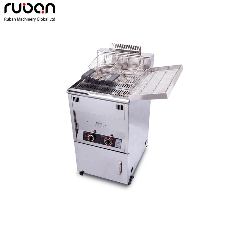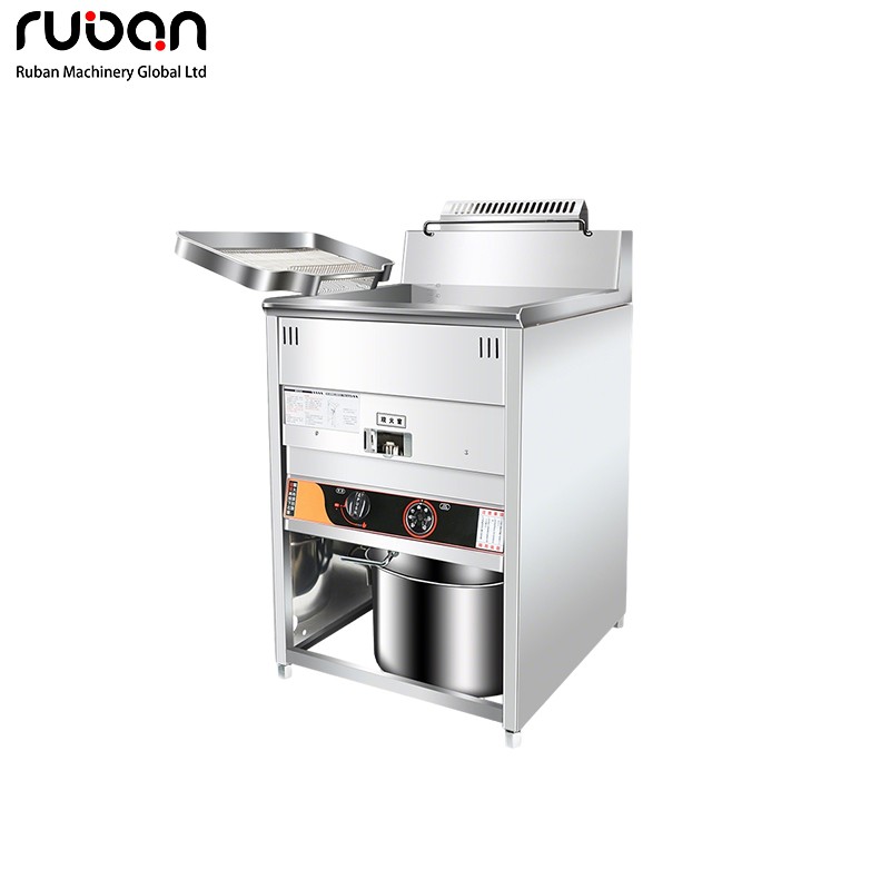 Freidora de gas comercial de alta eficiencia, perfecta para freír pollo, patatas fritas, aperitivos y mucho más. Fabricada en acero inoxidable, calienta rápidamente, es fácil de limpiar y está diseñada para uso comercial diario en restaurantes, food trucks y cafeterías.