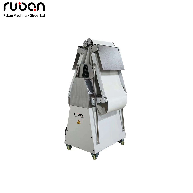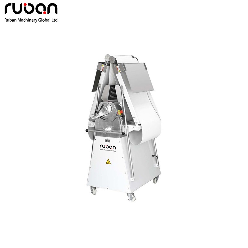 Esta laminadora de masa comercial es un electrodoméstico de calidad profesional para panaderías y cocinas industriales, diseñado para laminar y extender la masa de manera eficiente. Fabricada con metal apto para uso alimentario para mayor durabilidad e higiene, cuenta con un sistema de laminado ajustable para un control preciso del grosor de la masa, produciendo láminas uniformes para pasteles como croissants y danesas.