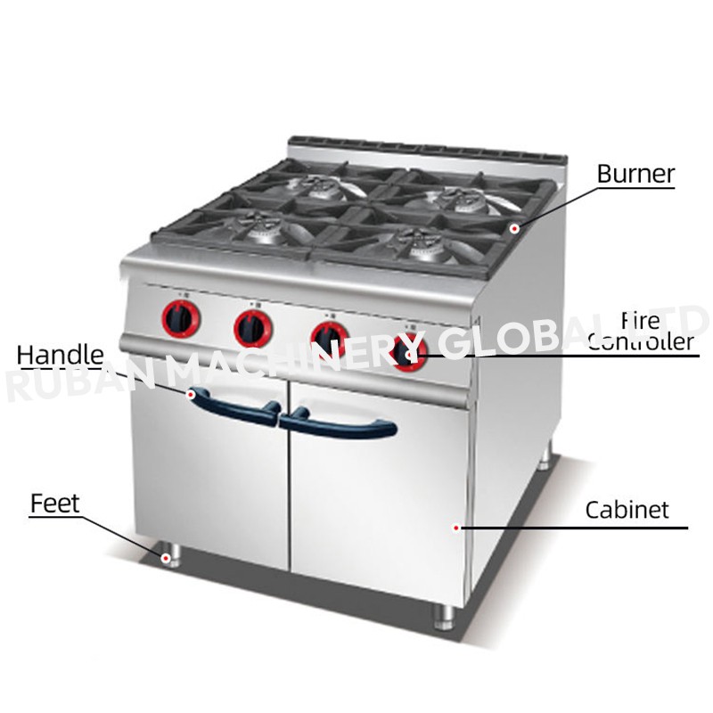 Este modelo es la gama de cocinas de gas comerciales Serie 900, especialmente diseñada para entornos de restauración comercial. Combina durabilidad y facilidad de uso, lo que la convierte en un equipo de cocina eficiente para las zonas de servicio de la cocina.