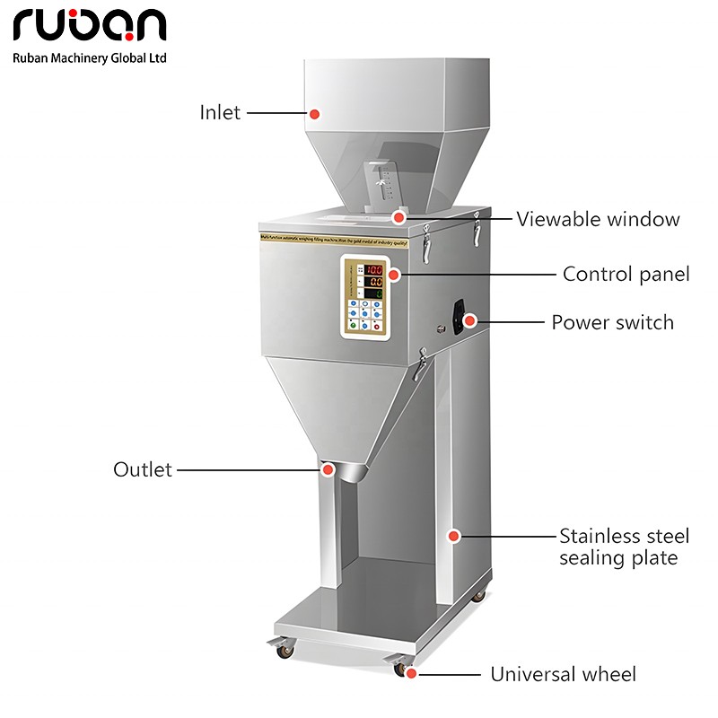 Esta máquina de llenado presenta un diseño vertical con cuerpo metálico, equipada con un panel de control inteligente y una tolva de gran capacidad. Además, cuenta con ruedas en la base para facilitar su desplazamiento. Es ideal para el llenado cuantitativo de productos en polvo y granulados de hasta 2 cm, y puede procesar diversos materiales como granos, cereales, condimentos y gránulos de plástico. Se trata de un equipo de llenado automatizado para industrias como la alimentaria, la química y la de fabricación de hardware.