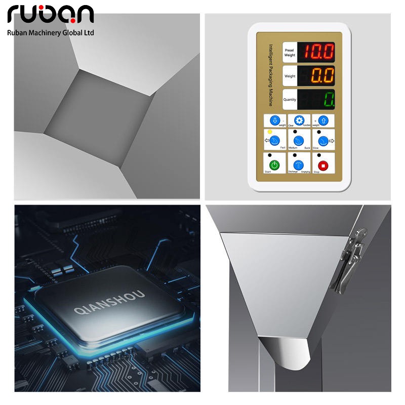 3. Principio de funcionamiento: Tras preconfigurar los parámetros de llenado a través del panel de control, los materiales entran en el mecanismo de alimentación cuantitativa desde la tolva, y el equipo transporta los materiales en la cantidad precisa al contenedor de destino a través del puerto de descarga según los valores establecidos para completar el llenado automático.