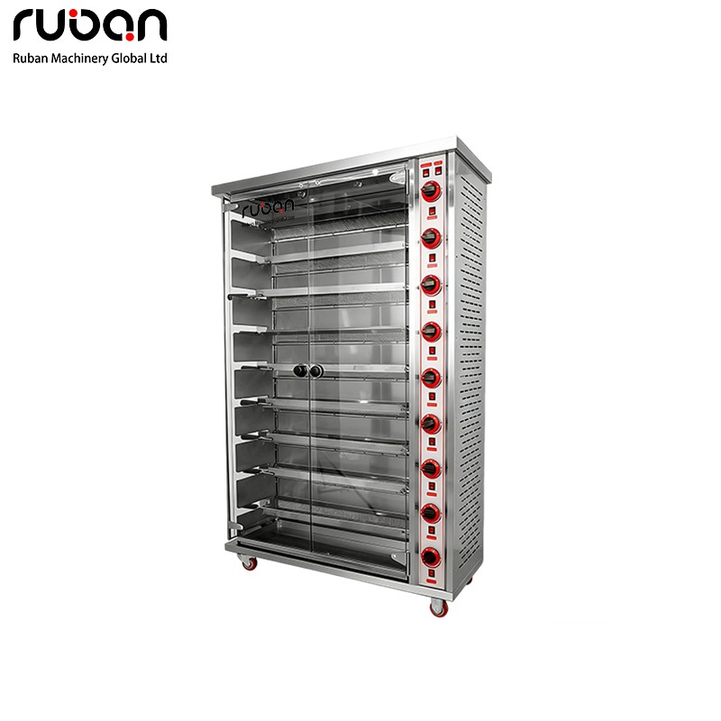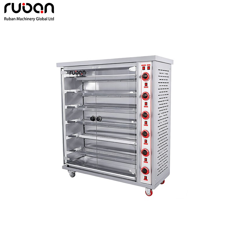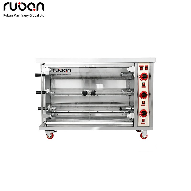 Este horno asador industrial de alta resistencia está diseñado para servicios de alimentación de gran volumen. Con múltiples asadores giratorios independientes, controles de temperatura precisos y una puerta de cristal panorámica, garantiza un asado uniforme y consistente de pollo, pato y otros alimentos, ideal para restaurantes, charcuterías y supermercados.