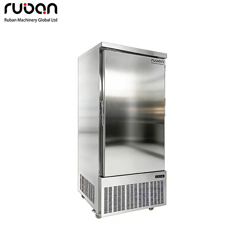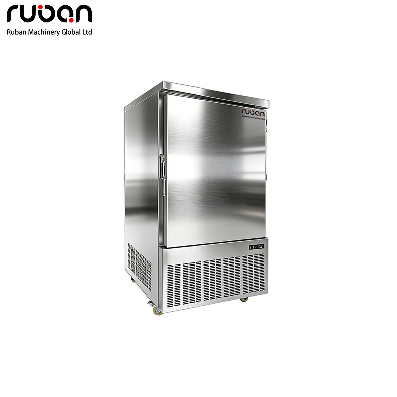 Este abatidor de temperatura comercial de una puerta está fabricado en acero inoxidable con un diseño vertical. Su función principal es la congelación rápida de ingredientes. Las rejillas de disipación de calor de alta densidad en la parte inferior garantizan una refrigeración estable, y las ruedas facilitan su desplazamiento. Ideal para entornos comerciales como cocinas de restaurantes y talleres de procesamiento de alimentos, permite congelar rápidamente ingredientes como alimentos frescos, pasteles y platos preparados.
